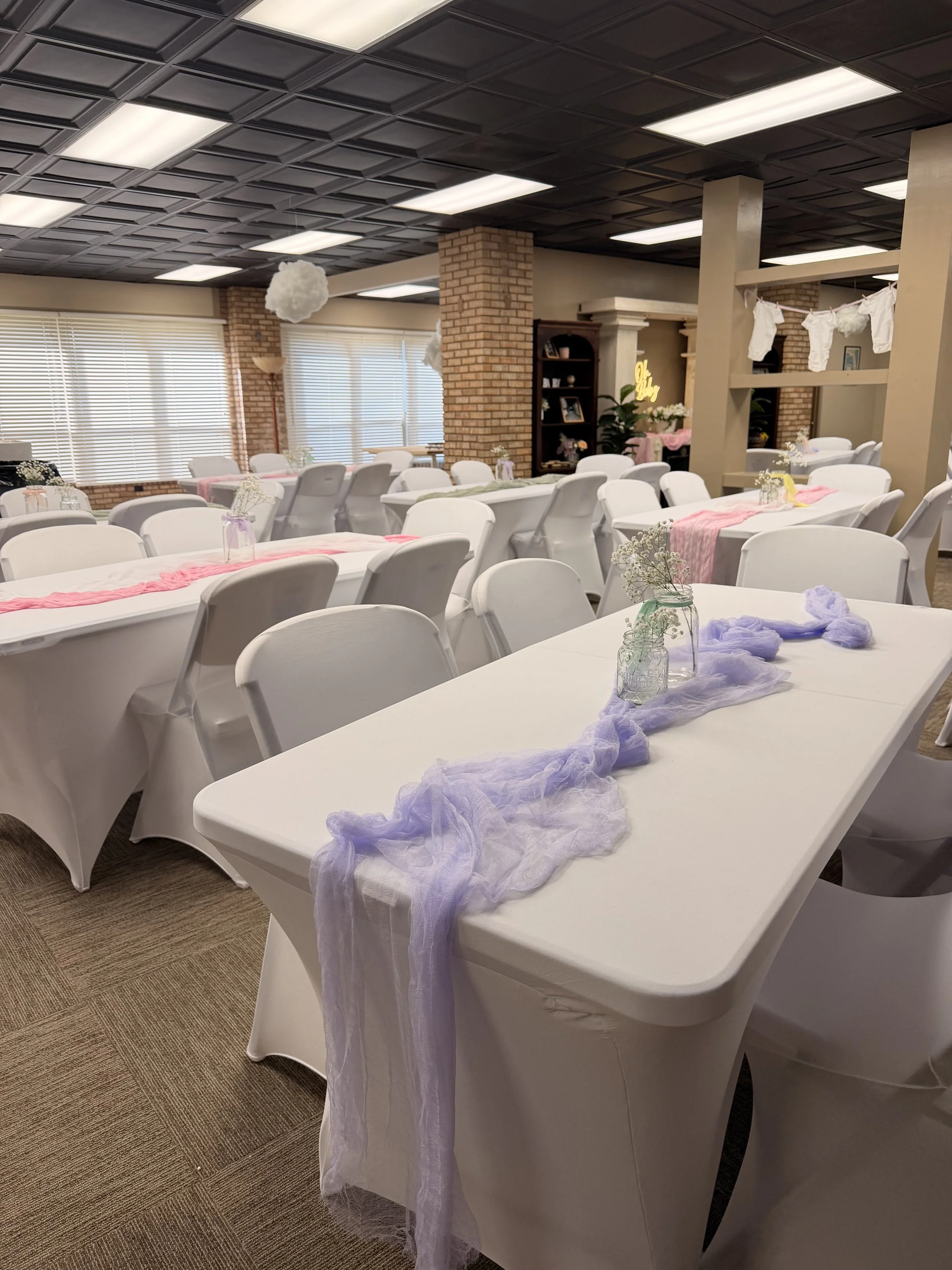 Enjoy four hours of event time, plus one hour prior for setup and 30 minutes after for cleanup. Perfect for showers, birthdays, and smaller gatherings with a seamless, stress-free experience.